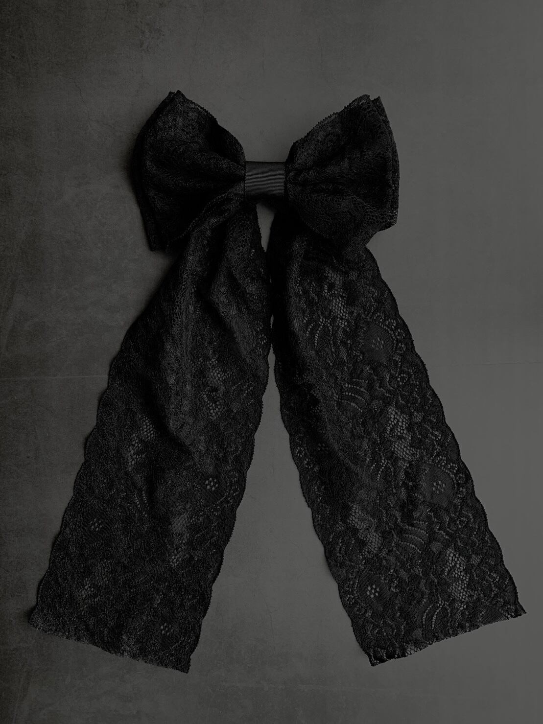 日常のシンプルなコーディネートに彩りを添える、レースを何重にも重ねたリボンバレッタ。